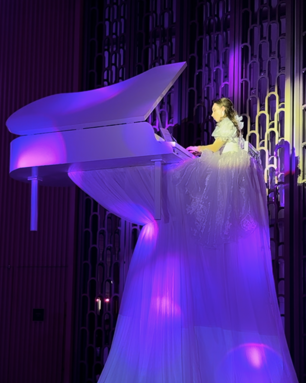 • Live piano music performed from a custom-built, suspended or mobile piano